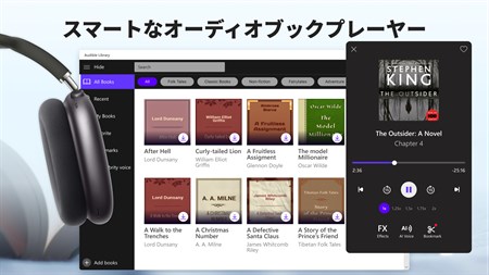 基本ãƒãƒ¼ã‚¸ãƒ§ãƒ³ アプリã®åŸºæœ¬ãƒãƒ¼ã‚¸ãƒ§ãƒ³ã«ã¯ã€ã‚ªãƒ¼ãƒ‡ã‚£ã‚ªãƒ–ック プレーヤーã®ã™ã¹ã¦ã®æ©Ÿèƒ½ãŒã‚りã¾ã™ã€‚ è‡ªåˆ†ã®æœ¬ã‚’ã„ãã¤ã‹è¿½åŠ ã—ã¦ã€ã©ã“ã§ã‚‚èžã„ã¦ã€ãŠæ°—ã«å…¥ã‚Šã®çž¬é–“ã‚’ä¿å˜ã§ãã¾ã™ã€‚