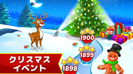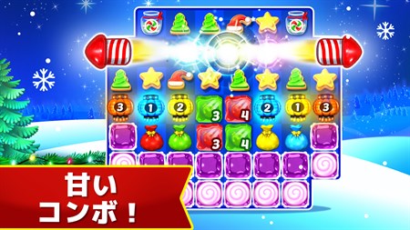 Christmas Cookieã¯ã€æ§˜ã€…ãªãƒ‘ワーアップã®çµ„ã¿åˆã‚ã›ãŒã‚ã‚‹å…¨ãæ–°ã—ã„レベルã®ãƒžãƒƒãƒ3パズルã§ã™ã€‚ プレゼントを開ã‘ãŸã‚Šã€è¿·æƒ‘ãªé›ªã ã‚‹ã¾ã‚’溶ã‹ã—ãŸã‚Šã€ã‚¯ãƒªã‚¹ãƒžã‚¹ã®é´ä¸‹ã®ä¸èº«ã‚’出ã—ãŸã‚Šã§ãã¾ã™ï¼ ãŸãã•ã‚“ã®ã‚¯ãƒƒã‚ーをマッãƒã—ã¦ã‚¯ãƒªã‚¹ãƒžã‚¹ã®é£¾ã‚Šã€çŸ¢å°ã®ã‚¿ã‚¤ãƒ«ã‚„ãã®ä»–ã®ãƒ‘ワーアップを作りã€ä¸€åº¦ã«ãŸãã•ã‚“ã®ã‚¯ãƒƒã‚ーをã¾ã¨ã‚ã¦ã‚¯ãƒªã‚¢ã—ã¾ã™ã€‚ã•ãã•ãã¨ã‚¯ãƒªã‚¢ã—ã¦ã„ã‘ã¾ã™ï¼