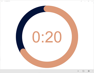 Windows 8.1標準のタイマー風の、円形表示のタイマーです。タイマー時間を10秒~5分の間で指定することができます。