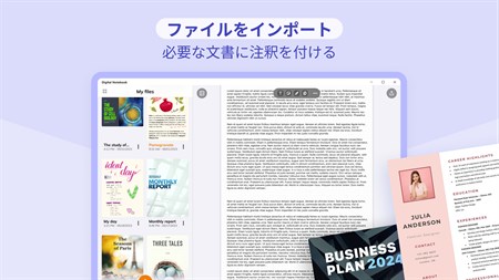 インãƒãƒ¼ãƒˆã—ã¦ç®¡ç†ã™ã‚‹ æºå¸¯é›»è©±ã§ãƒ‰ã‚ュメントを管ç†ã€æ³¨é‡ˆä»˜ã‘ã€ä¿å˜ã§ãã¾ã™ã€‚ã“れã¯ã€ãƒ•ã‚¡ã‚¤ãƒ«ã‚’å¸¸ã«æŒã¡æ©ããŸã‚ã®åŠ¹çŽ‡çš„ã‹ã¤å®‰å…¨ãªæ–¹æ³•ã§ã™ã€‚ デジタル ãƒŽãƒ¼ãƒˆãƒ–ãƒƒã‚¯ã§æœ€é«˜ã®ãƒ¡ãƒ¢å–り体験を体験ã—ã¦ãã ã•ã„。