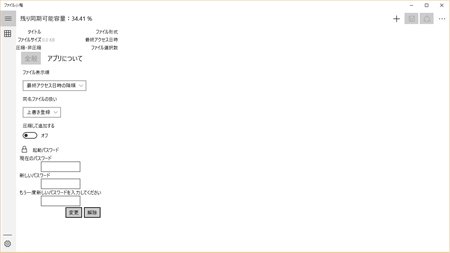 (注意)旧バージョン(v1.X.X)との互換性 v1とv2の間では保管しているファイルに関しては完全に互換があります。 v1で保管していたファイルはそのままv2でも同じように参照が可能です。 パスワードに関しては保護方法を一新したため、v1で設定していたパスワードはv2では非互換のために初期化されてしまいます。 v2を初めて起動した際に、お手数ですがパスワードの再設定をお願いします。