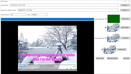 このアプリを使用して、オーディオファイルを選択し、ビデオの背景(色または画像)を設定してから、ビデオの前景(静的テキストまたは動的歌詞)を設定するだけで、まったく新しいビデオを生成できます。