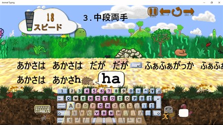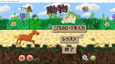 • 動物タイピングã¯ã€æ¥½ã—ãæ°—軽ã«ã‚¿ãƒƒãƒã‚¿ã‚¤ãƒ”ング(ã‚ーボードを見ãšã«æ–‡å—入力をã™ã‚‹ã“ã¨)ã‚’å¦ã¹ã‚‹ãƒãƒ¼ãƒžå—入力用ã®ç·´ç¿’ゲームã§ã™ã€‚速ãタイプã™ã‚Œã°ã™ã‚‹ã»ã©ã€é€Ÿã走る動物 ãŒå‡ºã¦ãã¾ã™ã€‚最åˆã¯ã‚«ã‚¿ãƒ„ムリã€ãã—ã¦ã‚¦ã‚µã‚®ã€ã•らã«é¦¬ãƒ»ãƒ»ãƒ»ã‚‚ã¡ã‚ã‚“ã€ã‚¿ã‚¤ãƒ”ング㮠æ£ç¢ºã•ã‚‚å•ã‚れã¾ã™ã‹ã‚‰æ°—ã‚’ã¤ã‘ã¦ãã ã•ã„ã。ã•ã¦ã€ã‚ãªãŸã¯ãƒãƒ¼ã‚¿ãƒ¼ã‚’呼ã³å¯„ã›ã‚‹ã“㨠ãŒã§ãã‚‹ã®ã§ã—ょã†ã‹ãƒ»ãƒ»ãƒ»!?
