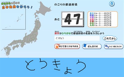 日本の都道府県をすべて答えられますか?知っている都道府県を漢字、ひらがなで入力して答えましょう。キーボードから文字を入力できなくても、マウスや指で都道府県名を書いて入力することもできます。