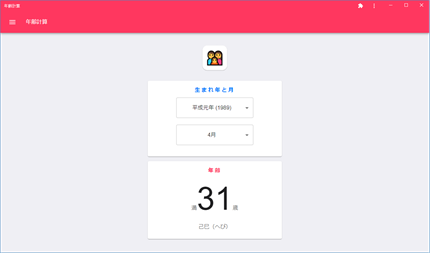 元号と西暦の両方を使って年齢を計算することが出来ます。