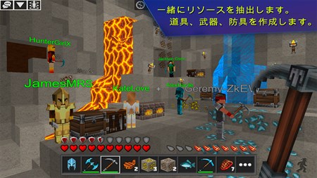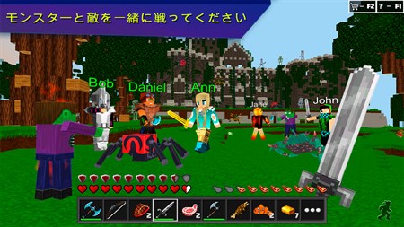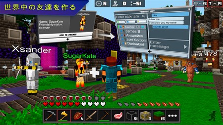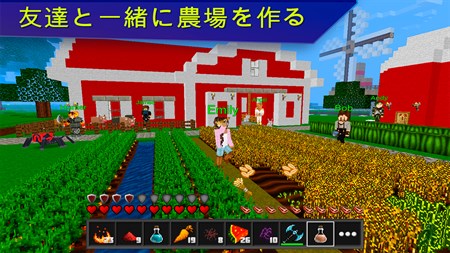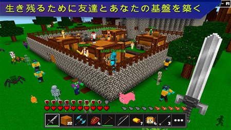 ゲームの機能 • オンラインマルチプレイヤーで世界中の新しい友達を見る。 友達のリストに追加! • 世界各地のプレイヤーとのチャットや、お友達とのプライベートチャットでチャットできる。 • 友人とチームを作り、生き残り、モンスター、選手、またはチームから防御するための基盤を構築する。 • 木材、金、ダイヤモンドなどの様々なタイプの鉱石やブロックなどの資源を手に入れる。 さまざまなブロックを掘り、破壊し、収集する。 マスターツール、食べ物、ポーションをより速く進める。 • 植物を育て、動物を飼育し、自分の農場を作ってください! 肉のために動物を狩り始めるか、作物を栽培する。 • マスターの武器と装甲、弓で撃つ、ダイナマイトを爆破する、爆発物を投げる。 • ブロックとテクスチャパックの巨大な選択はあなたのゲームをよりエキサイティングにする。 いくつかのブロックからビルディングを開始し、あなたの家、都市、巨大な帝国を構築する。 あなたの建物を借りて(チャンクを借りて)、それらに戻ってください。あるいは、新しい惑星の建物を新たに建て直すことができる。 • 古代の城や王国、住宅や都市、村や拠点、ピクセルアートやその他の興味深いオブジェクトを探索する。 • 160種類のスキンから独自のスキンを選択してキャラクターをカスタマイズする。