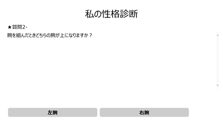 このアプリではあなたの性格を診断します。 スタートを押すと5つ質問されますので、正直にお答えください。