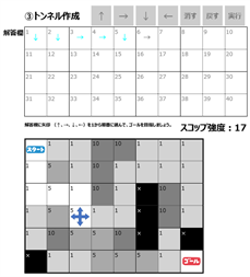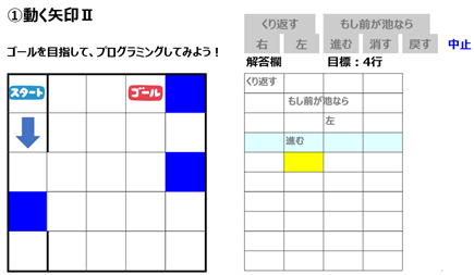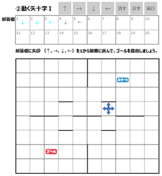 7種類の問題で学ぶことができます。 1.壁を打ち破れ :問題を俯瞰して捉えよう 2.不等号 :複合条件式を成立させよう 3.水を量る :手順と変数の概念を身に付けよう 4.動く矢十字Ⅰ :順次処理の基本を学ぼう 5.動く矢十字Ⅱ :計算力と仮説考察力を養おう 6.動く矢印Ⅰ :状態遷移を把握しよう 7.動く矢印Ⅱ :論理思考力を獲得しよう