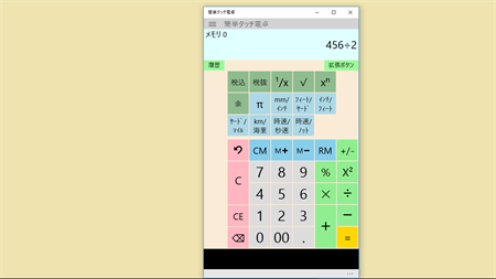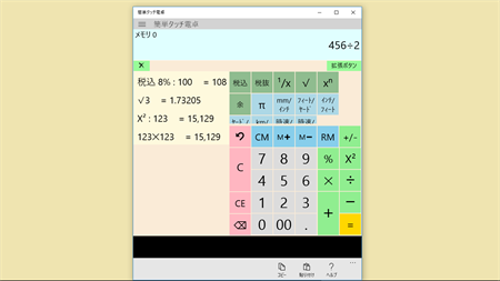 「電卓 簡単タッチ」 は、簡単で使いやすい、日本製の電卓アプリです。 普段、みなさんが使っている電卓と同じ操作方法を採用しているため、すぐに使えます。デスクトップでは、テンキーでの入力も可能です。Windowsアプリの特徴を生かした、高い機能も持っています。