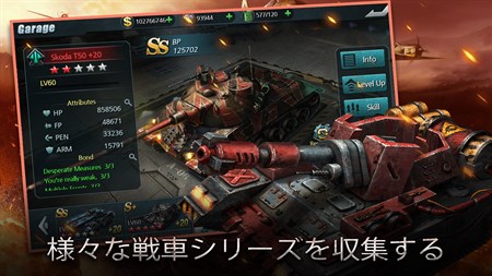 リアルタイムRPG+SLG戦車ゲーム。WWIIの有名な戦車を復元し、衝撃な戦争画面を再現する。幻想式WWIIストーリーと未来からの神秘的な戦車で歴史を越え、再び戦意を燃やし、鉄血な意志と屈しない鋼鉄戦魂を鋳造する。ゲームは英語、中国語、ドイツ語、フランス語、日本語、韓国語、トルコ語などの言語に対応できる。今すぐダウンロードして戦いに参加し、世界中のプレイヤーと一緒に競技しましょう!