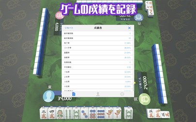 ■主なルール 後付けあり、喰い替えの禁止なし、流局時の形式テンパイあり、フリテンリーチ・フリテン空テンパイあり、ダブル役満なし、オーラス親流れでゲーム終了、包(パオ)なし、三家和なし、十三不塔なし、国士無双での槍槓なし。 麻雀の基本ルール、役、点数計算などについては、ヘルプをご覧下さい。 成績表は、流局、平局の場合は無勝負となり、対戦局数、得点、その他は成績にカウントされません。 成績表の生涯獲得金額は、最終得点に1,000円をかけたものです。