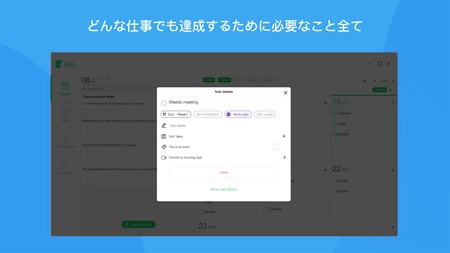 - 直感的なウィークリープランナー 1週間のハイレベルビューで、作業の段取りをうまく行いましょう。ある日の作業を別の日に簡単にドラッグして、1週間のワークライフバランスを図りましょう。