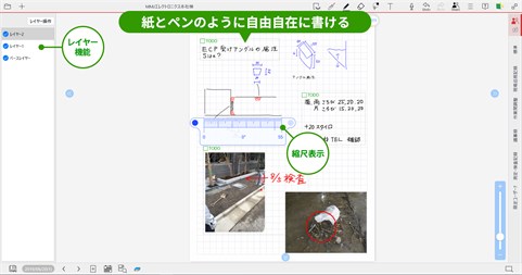 ●写真や動画、PDFの上にもメモや指示を書き込める ・図形ペンを使うと手書きの線がシャープに描かれ、図形をより美しく仕上げることができます。