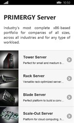 - The “Value Calculator” module allows a comparison of already existing IT infrastructures with solutions from Fujitsu to figure out potential savings and improvements in performance.- The “Product Finder” module helps you to look for a suitable server or storage system. After selecting some appropriate criteria, adequate PRIMERGY or PRIMEQUEST servers, as well as ETERNUS DX disk storage systems are displayed with a brief description and further information. - The “Resource Center” module keeps you up-to-date especially when you're on the move. It is your one-stop information center for the latest information on case studies, news, white papers, benchmarks, and much more. - The “Portfolio- or Use Case” overview provides a detailed insight into all x86 servers as well as PRIMEFLEX integrated systems.