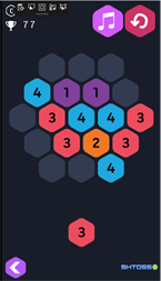 --How to play?-- 1. Tap a hexa number tile, select the blank grid to move into. 2. Connect at least 4 same number tiles, plus them and merge into a larger number. 3. After a round, the system will drop some random number tiles. 4. Combine the numbers to gain the game points..