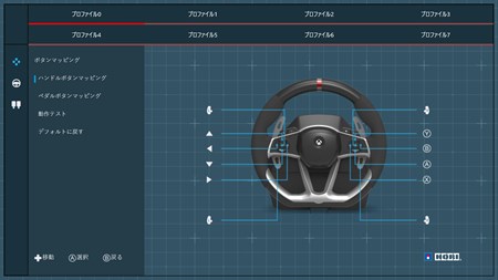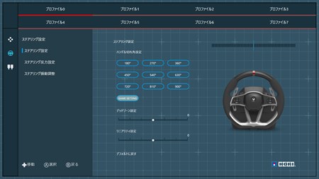 「プロファイル機能」や「ボタンマッピング」、「ステアリング設定」、「ペダル設定」で各機能を編集することができます。 ゲームに応じて好みの設定でプレイすることができます。