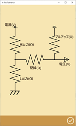 本アプリはデジタル回路技術者、制御プログラマの為の電子回路計算機です。過去の実務経験から私の欲しかったものを作りました。 デジタル回路実動作確認時に手元で計算が必要になる簡単な計算に限っております。 ・回路素子の直列/並列計算、オームの法則、周波数の時間・周波数換算。ばらつきを考えた範囲の値の計算 ・デジタル回路の現実回路の抵抗による H/Lレベルの計算、逆にスペックを満たす抵抗値の計算 ・デジタル回路で現実回路の容量によりなまった波形の読み込みタイミングでの H/Lレベルの計算、逆にスペックを満たす容量/抵抗値の計算