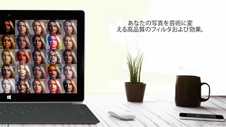 写真の編集はシンプルです! 私たちの Photo Editor Premium なら、画像の印象や外観を完全にコントロールすることができます。プリセット効果で、コントラスト、サチュレーション、色調、明るさほか多くの要素を調節できます。写真をクロッピングまたは写真サイズを変更し、テクスチャオーバーレイやピクチャフレームでドレスアップできます。