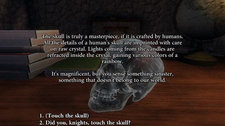 In "Crystal Skull", you are a king, whose daughter is ill and about to die. You hear about a miraculous crystal skull and have it brought to your palace in order to cure your ill daughter. But your man warns you that the skull might be cursed.