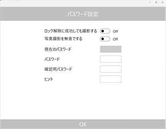 ■設定方法 ①本アプリをお使いのPCにインストールします。 ②ロックメイトのショートカットをスタートアップディレクトリにコピーします →詳細は「Windowsの起動時に自動的に実行するアプリを追加する」を参照してください ③PCを再起動します ④ロックメイトが起動したらID登録します ⑤解除パスワード、ヒントになるパスワード等を設定します ⑥PC内に保存された写真をGoogle Driveで同期させます →詳細は「Googleドライブに自動でデータを同期する方法」を参照してください ⑦これで、次回PC起動時にロックメイトが立ち上がり解除パスワードが要求されます