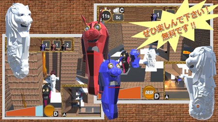 シンガポールと言えばマーライオン。 その かわいいマーライオンを操り、悪のマシーンライオン達をやっつけろ! 敵のマシーンライオンも侮れない。強い奴もいるし、とっても速い奴も… しかし、大丈夫。かわいいマーライオンもビッグマーライオンに変身だ。 こいつ、むちゃ強い!