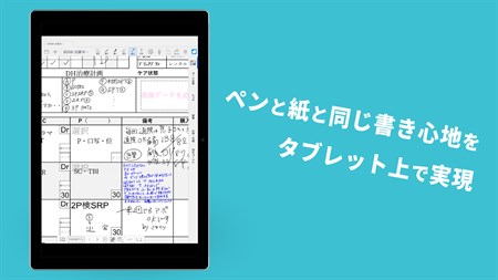 紙のサブカルテのペーパーレス化により、ペンでの記入からタブレットにタッチペンで記入することになります。ペンと紙のような書き心地を実現しているため、今までと違和感のない手書き入力が可能となります。