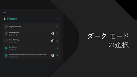 何かアイデアを思いつきましたか? そんなときは Microsoft To Do をお使いください。生産性を高めたい、ストレス レベルを下げたい、ただ頭の中を空っぽにしたいときなど、Microsoft To Do を使えば簡単に一日を計画したり、毎日の生活を管理したりできます。