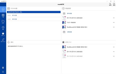 moreNOTEは、サーバーで一元管理した資料・画像・動画などをタブレットやPCで手軽に共有できるペーパーレスシステム。 画面同期機能を使ったペーパーレス会議や、外出先での資料閲覧・編集ができます。
