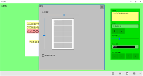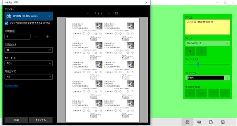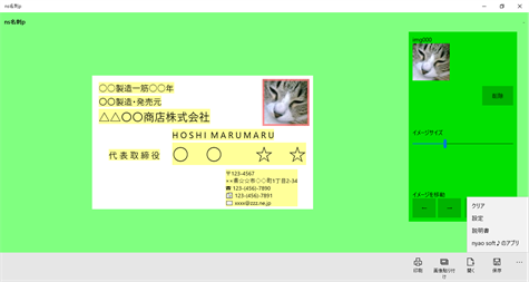 文字枠を編集、画像を貼り付けて、かんたんに名刺を作成、印刷できます ※A4サイズ2x5の名刺用紙をご使用下さい(カット紙は使用できません)