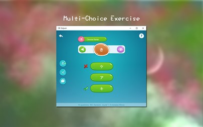 + Gojuon : Includes Seion, Dakuon, Handakuon and Yoon letters, etc. You can click the letter to read it, and right click to view its details. + Copy Kana: You can trace over the gray character with mouse to practice handwriting for Seion letters, we also provide writing animations for them. + Multiple Choice Exercise: According to the hiragana / katakana, select the matching katakana / hiragana. You can hide the question to enter the dictation mode. + Dictation: According to the hiragana / katakana, write the matching katakana / hiragana or romaji. You can hide the question to enter the dictation mode. + Lianliankan Game: A picture matching game for hiragana and katakana. Learn through funny games.