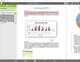 Preparing a meeting is so easy. For each meeting you receive just one PDF document, which includes the agenda, the attachments, minutes and incoming documents. Those endless stacks of separate documents are a thing of the past: now you have everything neatly in one place. Annotating is simple, and you can share your notes with your colleagues during, but also before the meeting. Your notes are saved, and placed back into the document after an update of the agenda or attachments. OurMeeting supports cross-platform sharing, so you can also share with colleagues who use the OurMeeting App on iPads or Android tablets. The archive is immediately available and fully searchable.