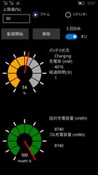 充電状況を監視して設定値以上になったらアラームで教えてくれます。 充電中に最低15分毎に監視しますので設定値はその分を考慮して設定してください。 通知の種類はアラームとリマインダーを選べます。 注意:充電状態でしか作動しません。