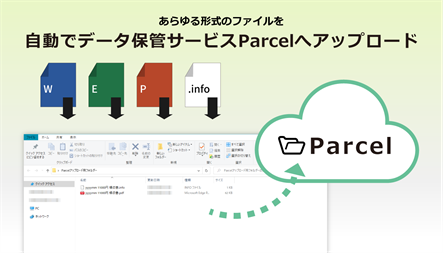 データ保管サービス『Parcel(パーセル)』にファイルをアップロードする手間を削減する、自動ファイルアップロードアプリです。