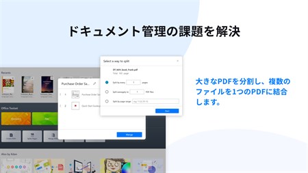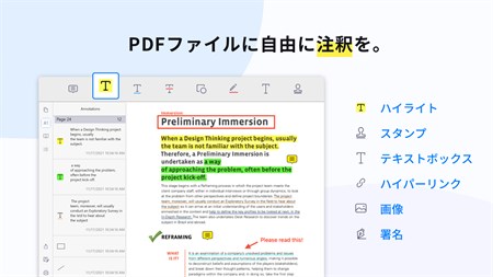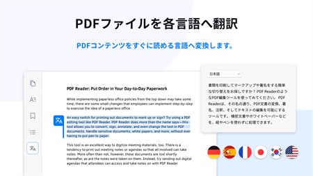 KdanのPDF Readerを使えば、PDF形式の閲覧、注釈付け、結合、整理、署名が簡単にできます。さらに、電子メールやほかの人気のクラウドストレージサービスを通じてファイルをすばやくパックアップ・共有することも可能です。作業の質を最大限に高め、作業自体を今までよりもずっと簡単にこなしましょう!