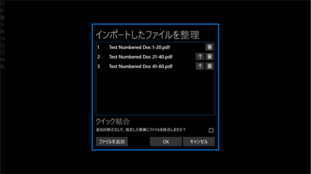クイック結合機能を使用して、複数のPDFを新規のPDF へ効率的に結合、または標準の結合機能を活用して、保存や印刷の準備ができるまで、新規の結合された文書をプレビュー、追加の文書を追加、および新規PDFを整理します。
