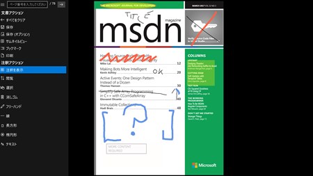 PDFへのマークアップが簡単に; PDF MarkUpでPDFを開いて、さまざまな 注釈 ツールを選んで、フリーハンドで手書きのメモ、指、マウス、またはスタイラスを使って描画などマークアップしましょうPDFの更新が終わったら、簡単に配布できるよう、ファイルシステムに保存することもできます。