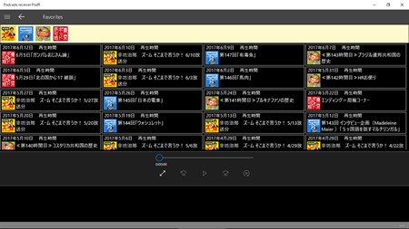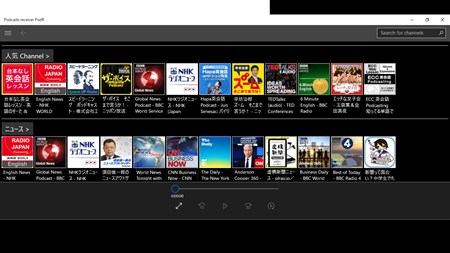 PodR は、Podcast を受信し、再生するアプリです。 画面に表示されているPodcast を選び、そのコンテンツを再生できます�� Pocast は国内だけでなく、海外の Podcast も表示されます。 自動停止機能もありますので、就寝前に見たり、聞いたりするのに便利です。