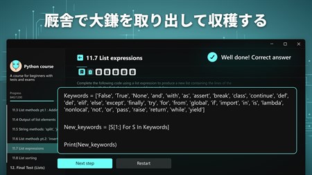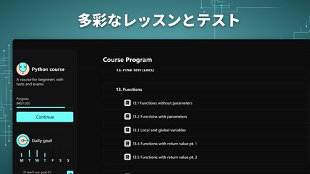 EXTENSIVE LESSON COLLECTION Discover a vast array of lessons in Learn Python that cover all the fundamental concepts and topics of Python programming. Whether you're starting with basic syntax and data types or delving into advanced subjects like object-oriented programming and web development, our structured lessons provide a clear and simple learning path for beginners.