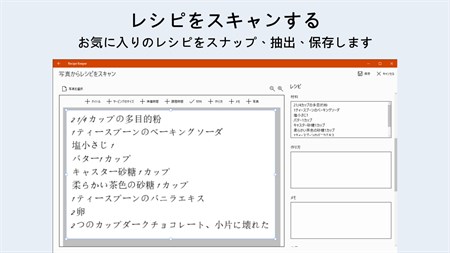 料理本、雑誌、手書きレシピからスキャン 携帯電話のカメラを使用して、または既存の写真やPDFファイルからレシピをスキャンします。 OCRテクノロジーは、画像を自動的にテキストに変換します。お気に入りの家族のレシピをすべて永久に安全に保管してください。