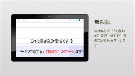 Scrble Lite は、Windowsタブレットにフリーハンドで書くための非常にシンプルなアプリです。 Scrbleのインクは敏感で楽しいです。 ペンや指でインクをつけ、2本の指で拡大または移動することができます。 Scrble Liteには事実上無限の紙があり、 必要なとき に 自動的に追加されます。 画面の余白に達したときに 中断されない書き込み のため 、Sを スクロール - Scrble Liteは、オートライティングパネルを持ってい ます。 設定から筆記枠の位置を設定して、 筆記スタイル に最適 にすることができ ます。 Scrble Liteは 、タイトル・エリアにノート・タイトルを書く ときに自動的に ノートに名前を付けることができます 。