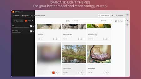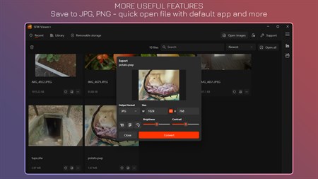 •• Open file with default app. •• Save file to JPG, PNG, ... and more advanced settings. •• Security feature to hide sensitive images.