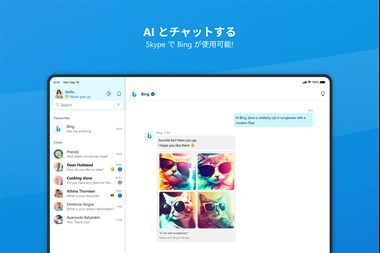 Skype は世界中で会話をサポートしています。相手がどんなデバイスで Skype を使っていても、インスタント メッセージ、音声またはビデオの通話で「こんにちは」と挨拶できます。新しい Skype の Bing とチャットして、AI を活用した回答、おすすめ、インスピレーションなどを得ることができます。Skype は、スマートフォン、タブレット、PC、Mac で利用できます。 • ビデオ通話 – 元気な声を聞くだけでなく、笑顔も見ましょう! HD ビデオ通話を使って 1 人から 49 人までの家族や友達と集まれます。「婚約しました!!!」と伝えた時のみんなの笑顔と歓喜する姿を見ることができます。 • チャット – 瞬時に他のユーザーと連絡を取ることができます。友達にメッセージを送信したり、@メンションで他のユーザーの注意を引いたり、グループ チャットを作成して家族や親戚との集まりを計画したりできます。 • Skype の Bing – 個別のチャットやグループ チャットで新しい Bing とチャットして、会話をしながら AI を活用した回答を得ることができます。おすすめを質問して計画を一緒に立てるのに役立てたり、インスピレーションを得たり、楽しいことを見つけるためのアイデアを Bing に求めたりできます。 • 共有 – 写真やビデオを友達や家族に送信しましょう。共有された写真やビデオはカメラ ロールに保存できます。画面を共有して、友達と旅行の計画を立てたり、チームにデザインを披露したりできます。 • 音声通話 - 顔を見せるのはちょっと恥ずかしいですか? Skype で世界中の誰にでも音声通話を発信できます。携帯電話や固定電話にも低料金で発信できます。 • 自分を表現 – 絵文字、GIF、ステッカー、デバイスや Web からの画像を使って、会話を盛り上げましょう。 • SMS - Skype を使って、世界中の携帯電話に SMS メッセージを送信しましょう。 このバージョンの Skype は、Windows 10 と 11 でのみご利用いただけます。以前のバージョンの Windows を実行している場合は、www.skype.com にアクセスして Skype をダウンロードしてください。 Skype から Skype への通話は無料です。通信業者のデータ料金が適用される場合があります。無制限のデータ プランまたは WiFi 接続を使用することをお勧めします。 Microsoft アカウントが必要です。Skype の Bing は、Bing プレビューの順番待ちリストから利用できます。詳細を確認してサインアップするには、https://www.bing.com/new にアクセスしてください。 • プライバシーと Cookie のポリシー: https://go.microsoft.com/fwlink/?LinkID=507539 • Microsoft サービス規約: https://go.microsoft.com/fwlink/?LinkID=530144 • EU 契約の概要: https://go.skype.com/eu.contract.summary