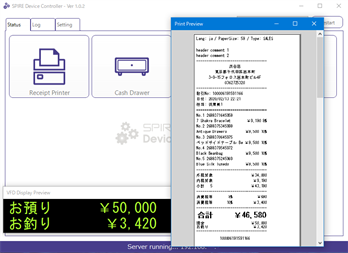 SPIRE Device Controllerを使うことでSPIRE POS推奨機器以外の周辺機器を動作させられる可能性がありますが、周辺機器および動作は保証・サポート対象外となります。 推奨の周辺機器をご利用可能な場合は、直接SPIRE POSから制御可能なダイレクト印刷をご利用ください。