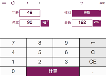 • 1日の消費カロリーの計算 • の計算 基礎代謝率 • 標準体重 計算