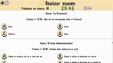 - Más de 600 Test. - Más de 12.000 Preguntas. - 114 Exámenes oficiales. - Simulación de examen. - Preguntas actualizadas continuamente. - Posibilidad de impugnar una pregunta. - Dos modos de realizar un mismo test (modo de respuesta instantánea o modo examen). - Estadísticas de los test realizados.