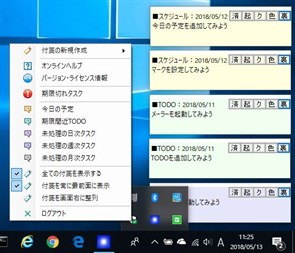 ■特徴 1.表示されている画面のまま編集 2.ドラッグ&ドロップによる簡単編集 3.作業結果の記録とレポート 4.定期タスク管理 5.TODO管理と付箋を融合 6.アプリケーションの簡単起動 7.在宅勤務用メッセンジャー機能 リモート接続メンバを確認し、付箋によるコミュニケーションができます。 ※リモートデスクトップで会社PCに接続し、同じファイルを開くことを前提。 ※ファイル共有による非同期のメッセンジャー機能。5分に一回自動的に付箋メッセージを確認。