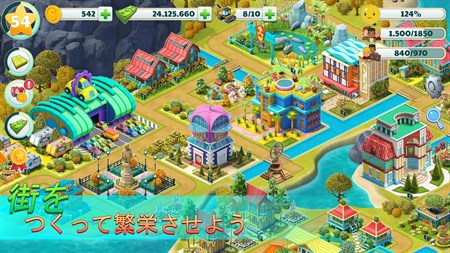 まちづくりカジュアルゲームはお好きですか? パラダイスシティのマネージャーになってみませんか! 小さな村から初めて、町へそして大都市へ。大きくしていくと国境で周辺の美しいエキゾチックな島につながります。