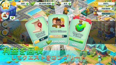 Sparkling Society Gamesをよくご存知なプレイヤーなら、このまちづくりカジュアルゲームを絶対に気に入ります。当社では近年、ゲームの主流を少しファーミングゲームに移行しました。たとえば、”Town Village” 、” Village Harvest Town”など。一方で”City Island 3” や”City Island 4” のゲームは大成功を収めましたので、再度まちづくりカジュアルゲームの楽しさを復活させたのがこのゲームです。とはいっても内容的には今までにない新鮮さと独自のテーマやタッチを加えました。