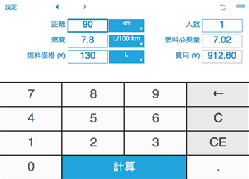 計算機では、燃料の量と旅費を計算することができます。 電卓では、燃料費と旅費(燃料費)を計算することができます。
