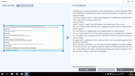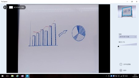 本アプリは、ホワイトボードや印刷物、ノートなどを撮影して、電子化するアプリです。撮影した画像から自動的にホワイトボード領域を認識し、領域の色と形を補正した上で画像ファイルとして保存します。